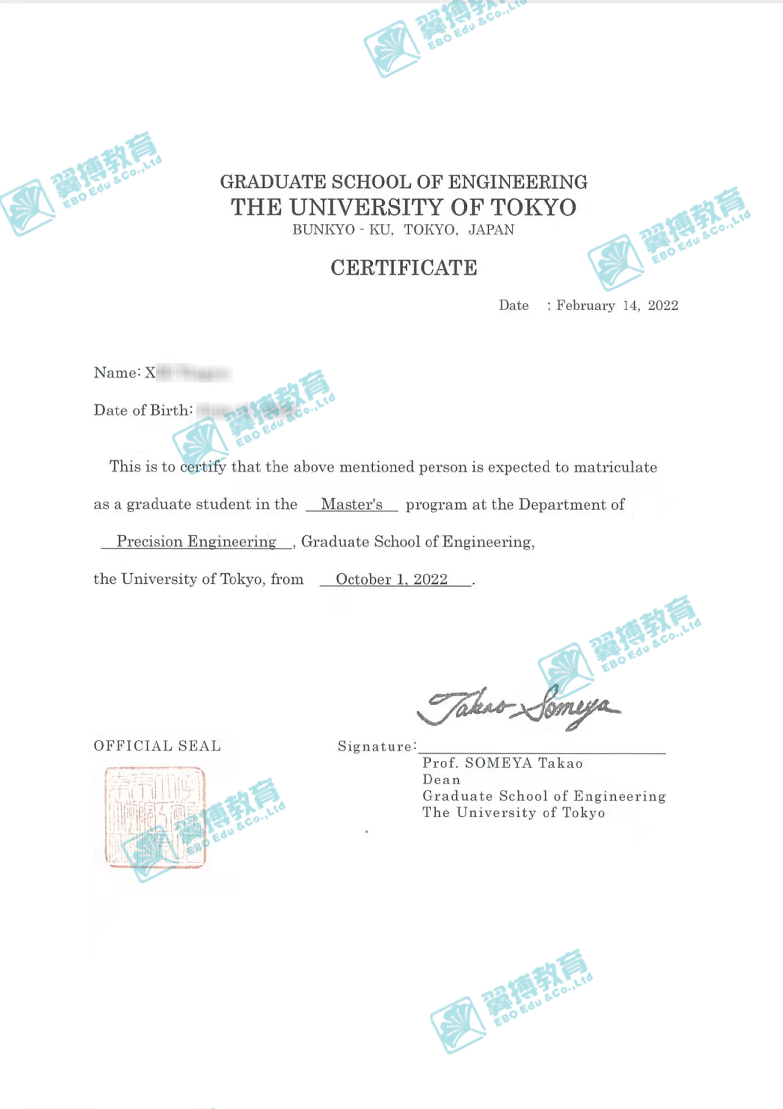 東京大學工學院修士課程(IME材料免試錄取,MEXT獎學金獲得者);